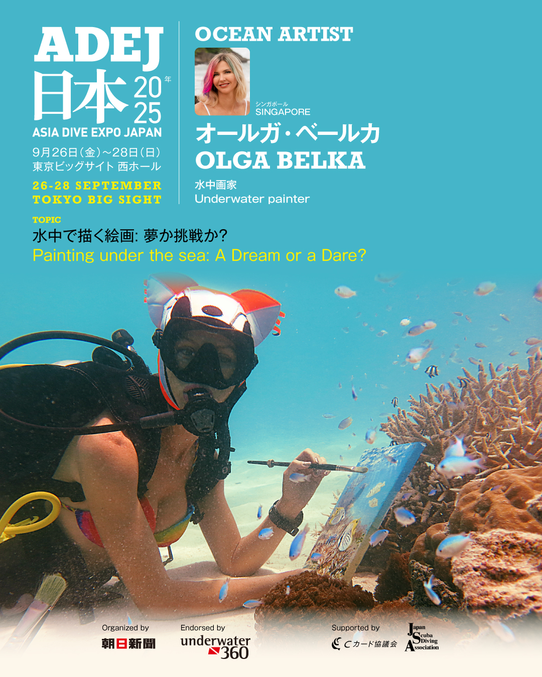世界でただ一人、海底で絵を描く水中画家として知られる。科学的に認められた環境に優しい技法を確立し、海の本物の色彩と光をキャンバスに描き出す。リサイクル素材を用いた持続可能な展示も実践している。